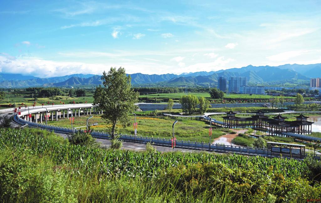 為拓展發(fā)展空間、拉大城市框架,五臺(tái)縣圍繞瀛湖、濕地、玉軒、文昌山等公園新建環(huán)城路,并在各個(gè)路段因地制宜配建文化景點(diǎn)、山水橋梁、游園、健身廣場(chǎng)、步道長(zhǎng)廊等設(shè)施,繪就一幅“路在景中、景在城中”的城市立體畫卷。圖為北城區(qū)一景。(金俊賢攝)