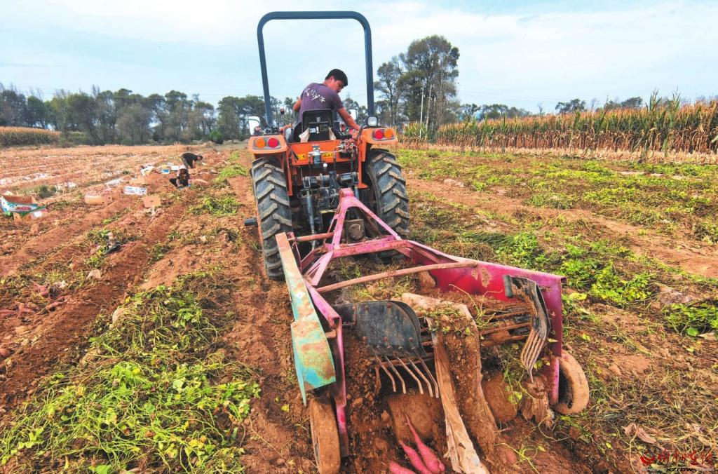 10月13日,忻府區(qū)北合索村村民在收獲紅薯。該村引進(jìn)新品種,增施有機(jī)肥,加強(qiáng)科學(xué)管理,提高紅薯產(chǎn)量和品質(zhì),帶動(dòng)農(nóng)民增收。 (記者 劉紀(jì)森攝)