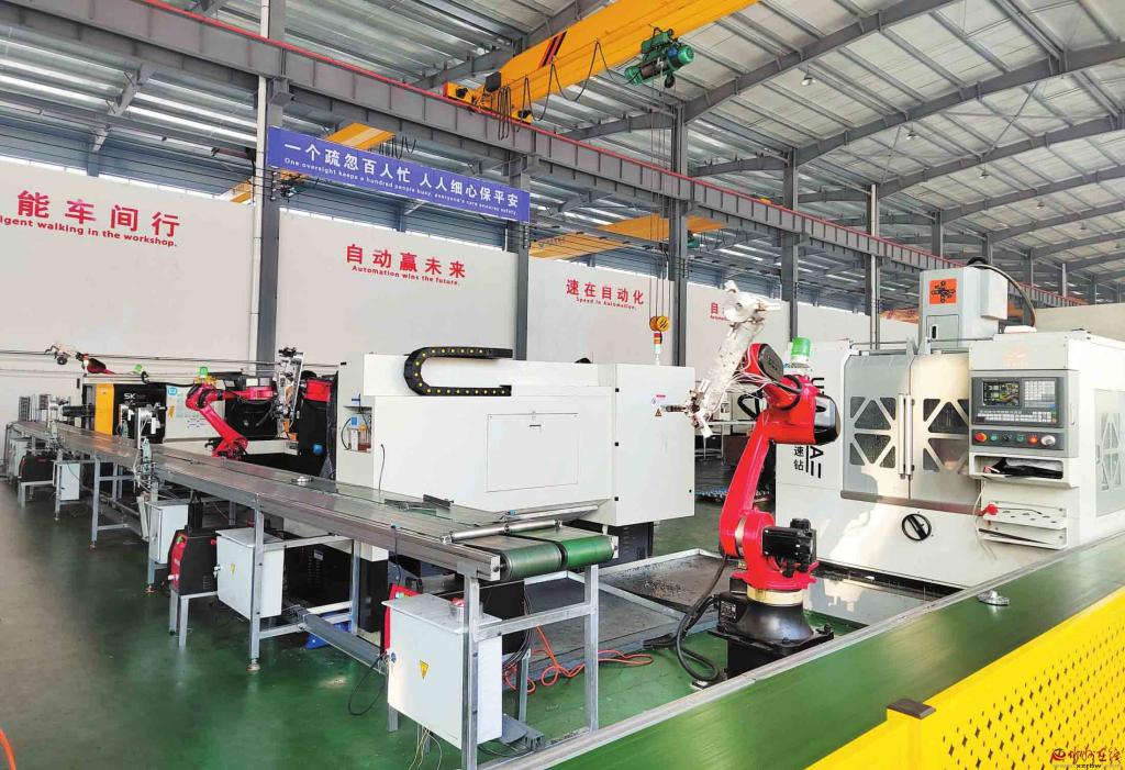 定襄縣高新技術創(chuàng)新服務中心小法蘭智能化生產線,是企業(yè)與高校合作研發(fā)的智能化生產成果轉化項目。該生產線可實現(xiàn)從原材料上料、加工到成品下料的全流程無人化操作,與過去法蘭生產線相比較,加工效率提升了約30%,產品生產成本整體降低了30%。(張玉虎 攝)