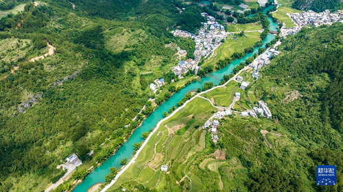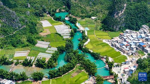黔南布依族苗族自治州羅甸縣沫陽鎮(zhèn)大小井景區(qū)一隅(8月12日攝,無人機照片)。(新華社記者 陶亮 攝)