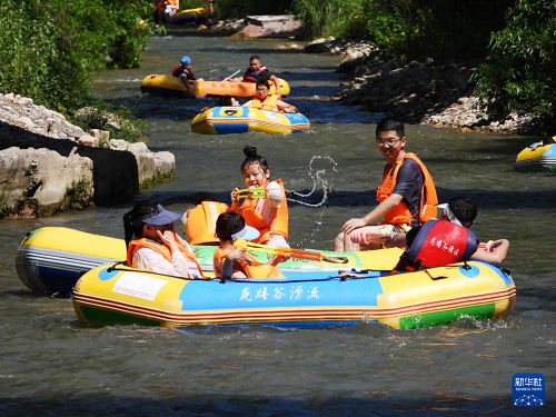 8月13日,游客在四川省達州市渠縣臨巴鎮(zhèn)涼橋村漂流游玩。(新華社發(fā) 鄧良奎 攝)