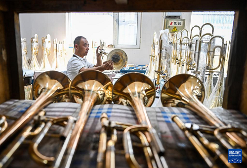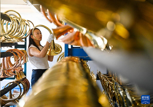 目前,蔡公莊鎮(zhèn)擁有樂器相關企業(yè)超100家,生產涵蓋薩克斯、圓號、小號等100余種銅木管樂器,年生產西洋管樂器達40余萬支,其中超八成遠銷海外。