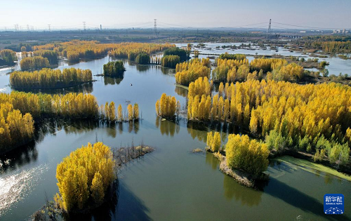 初冬時節(jié),在河北省邢臺市隆堯縣亦城村泜河沿岸,樹葉金黃,與水面、河岸相映襯,勾勒出一幅美麗和諧的自然畫卷。