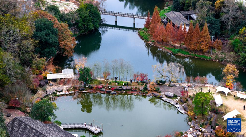 冬日時(shí)節(jié),福建省福州市晉安區(qū)壽山鄉(xiāng)九峰村層林盡染,火紅的楓葉和水杉與古樸村落、清澈溪流、石拱橋影相映成趣,共同勾勒出一幅冬日勝景,吸引眾多游人前來。