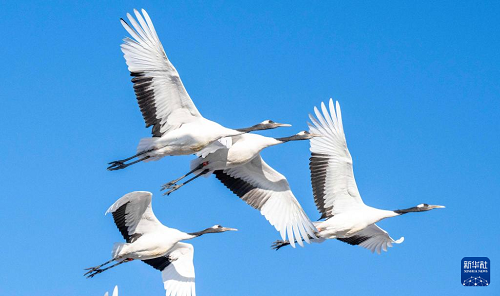1月22日在黑龍江扎龍國家級自然保護區(qū)拍攝的丹頂鶴。(新華社發(fā) 何華文 攝)