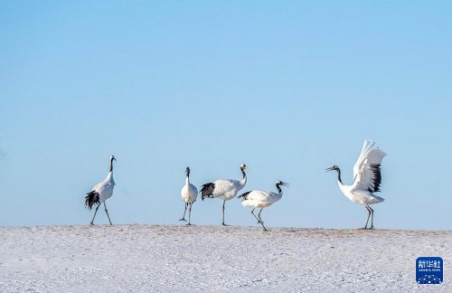 時值深冬,位于黑龍江省齊齊哈爾市的黑龍江扎龍國家級自然保護區(qū)銀裝素裹,冰雪中起舞飛翔的丹頂鶴吸引游客前來參觀、拍照。