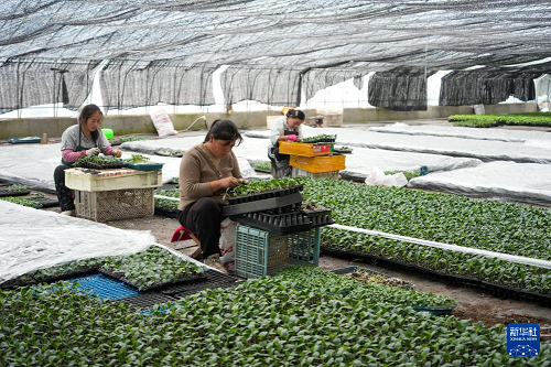 1月28日,在莘縣燕店鎮(zhèn)的蔬菜種植大棚,農(nóng)戶(hù)在進(jìn)行大棚蔬菜種苗嫁接工作。(新華社記者 徐速繪 攝)