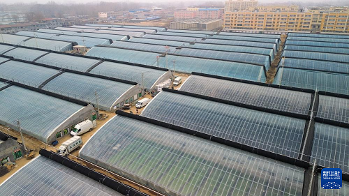 1月28日拍攝的莘縣燕店鎮(zhèn)的蔬菜種植大棚(無(wú)人機(jī)照片)。(新華社記者 徐速繪 攝)