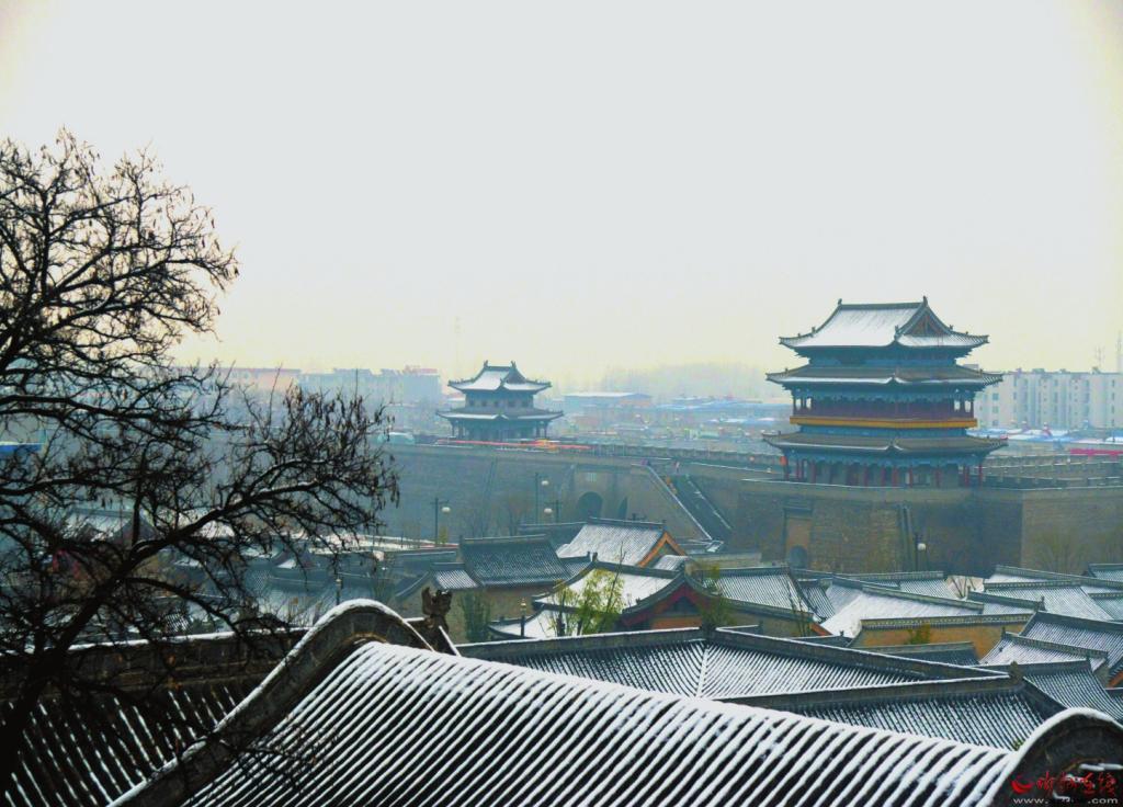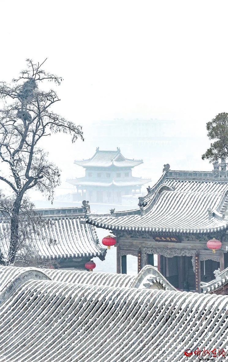 冬天一定要來(lái)忻州古城,因?yàn)檫@里的風(fēng)光大不一樣——它寒冷、莊嚴(yán),與遠(yuǎn)處的系舟山連成一片,煙波朦朧;它黯淡、粗獷,與整個(gè)北方的豪邁自成一體,氣勢(shì)磅礴。它就像這雪,能給人帶去希冀。雪安,忻州古城。