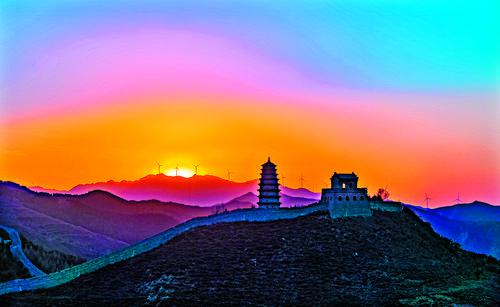 山勢險(xiǎn)峻的雁門關(guān),四季都有獨(dú)特的風(fēng)景。春天,百花盛開,使得雄渾的長城燦爛奪目;夏天,色彩斑斕,背靠翠綠的山林,呈現(xiàn)生機(jī)勃勃的景象;秋天,丹楓如火,由綠轉(zhuǎn)黃,由黃轉(zhuǎn)紅,如詩如畫,美不勝收;冬天,長城被雪花覆蓋,顯得更加滄桑,猶如童話世界般靜謐而誘人。