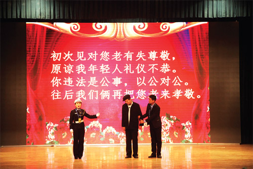 1月27日至29日,偏關(guān)縣公安局交警大隊(duì)交通安全文藝宣傳隊(duì)在隊(duì)長(zhǎng)們的帶領(lǐng)下,先后走進(jìn)市實(shí)驗(yàn)中學(xué)、市客運(yùn)中心、國(guó)家電網(wǎng)忻州供電分公司進(jìn)行了三場(chǎng)演出,用自編自導(dǎo)自演、群眾喜聞樂(lè)見(jiàn)的“漫翰調(diào)”、“二人臺(tái)”、北路梆子、民歌等一系列極具地域文化特色的地方小戲、說(shuō)唱歌舞等曲藝形式進(jìn)行宣傳演出,贏得滿(mǎn)堂喝彩,場(chǎng)場(chǎng)掌聲雷動(dòng)。作為春節(jié)回家路上的一道文化盛宴,這次春節(jié)前的平安出行警示教育“送安全下鄉(xiāng)”巡演是我市公安交警精心策劃、編排的春運(yùn)交通安全宣傳行動(dòng)之一。28日,市客運(yùn)中心人頭攢動(dòng),熙熙攘攘,大廳外懸掛的橫幅標(biāo)語(yǔ)“守護(hù)您的平安出行,保障道路安全暢通是每一位交警的神圣職責(zé)!”格外醒目。候車(chē)大廳里,暖意融融,市公安局交警支隊(duì)組織的春運(yùn)交通安全文藝演出正在進(jìn)行,交警版的民間小調(diào)《拜大年》、小品《警鐘聲聲》、雙簧《二愣子》等節(jié)目令人賞心悅目、捧腹不止。在歡笑之余,提醒和教育廣大群眾自覺(jué)抵制不文明、不安全交通行為,觀看演出的旅客和客車(chē)司機(jī)紛紛感慨,這樣的宣傳教育生動(dòng)形象,人人愛(ài)看且耐人尋味,警示作用很大。