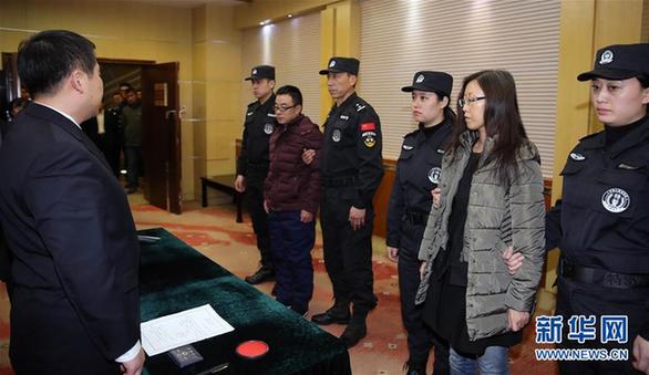 2月6日,在北京首都機(jī)場(chǎng),“百名紅通”嫌犯付耀波(后中)、張清曌(前中)被抓獲歸案。當(dāng)日,在中央追逃辦統(tǒng)一部署下,在外交部、公安部及我駐巴巴多斯、格林納達(dá)等駐外使館的大力協(xié)助下,遼寧省追逃辦組織協(xié)調(diào)檢察、公安等部門,成功將遠(yuǎn)逃至加勒比海島國(guó)圣文森特和格林納丁斯的“百名紅通”第39號(hào)嫌犯付耀波、第41號(hào)嫌犯張清曌同時(shí)抓獲歸案。新華社記者殷剛攝