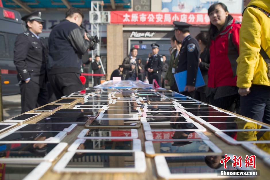3月2日,山西太原警方發(fā)還民眾被盜手機(jī)。近日,太原市公安局偵破一個手機(jī)扒竊犯罪團(tuán)伙,破獲案件200余起,追繳手機(jī)180余部。張?jiān)?攝