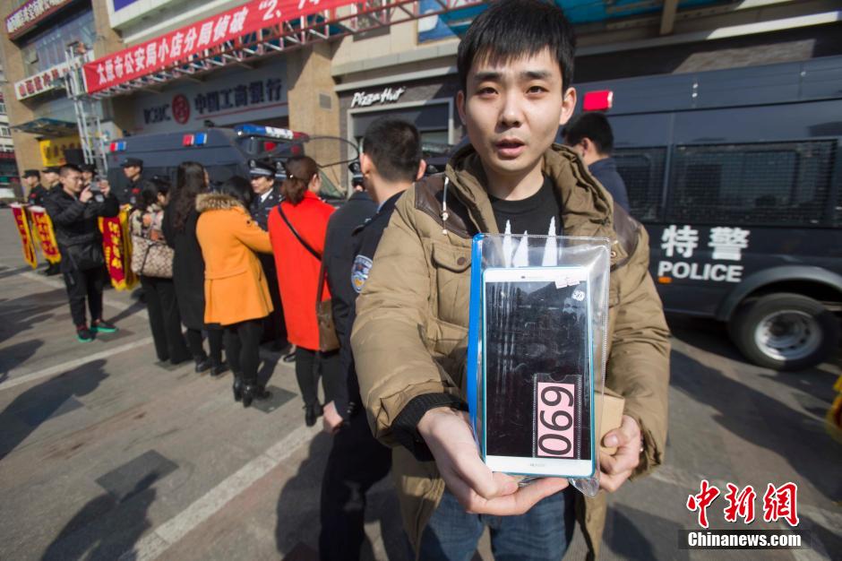 3月2日,山西太原警方發(fā)還民眾被盜手機(jī)。近日,太原市公安局偵破一個(gè)手機(jī)扒竊犯罪團(tuán)伙,破獲案件200余起,追繳手機(jī)180余部。張?jiān)?攝