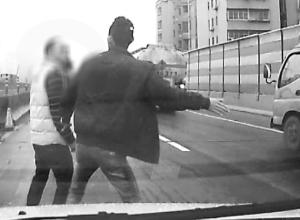 在郭先生轎車的行車記錄儀的錄像中,郭先生拿著手機(jī)站在車頭,另外兩名男子也跟了上來,雙方隨后發(fā)生言語沖突,其中一名身穿黑色外套的男子更是動(dòng)手拍打郭先生的臉部,隨后,郭先生還被黑衣男子推打。
