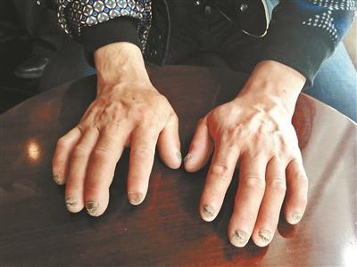 劉忠林:手指頭伸不直,拿不了重物。右腳大拇指切了后,走路沒勁,上得了山,下不了山。