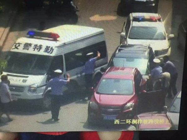 湖南長沙市公安局交警部門9月12日下午向澎湃新聞(www.thepaper.cn)證實,長沙交警特勤大隊民警在桐梓坡路西二環(huán)橋下開展例行酒駕整治時,車牌為湘A27K07的黑色小型越野車駕駛人拒不熄火,并緊閉車門、車窗,拒絕出示相關證件和下車配合接受酒精測試,而后駕車撞開10輛車后沖關逃逸,造成3人受傷。
