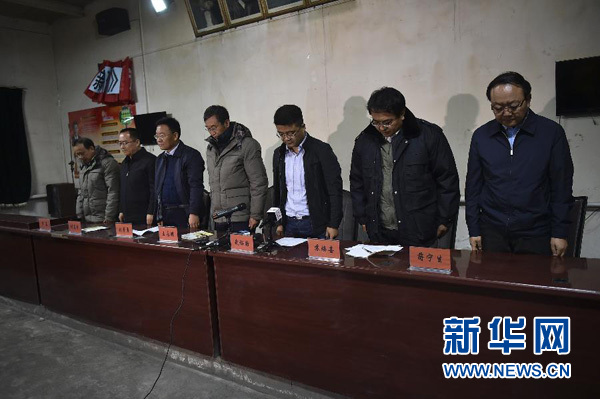 9月28日,參加新聞發(fā)布會(huì)的工作人員在向遇難者默哀。 27日早晨,寧夏石嘴山市寧夏林利煤炭有限公司煤礦三號(hào)井發(fā)生瓦斯爆炸事故,截至27日22時(shí)30分,事故已造成18人遇難,另有2人下落不明。目前救援仍在緊張進(jìn)行中。新華社記者王鵬攝