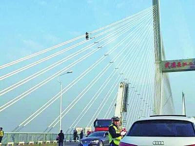 二橋斜拉索上出現(xiàn)一個(gè)人