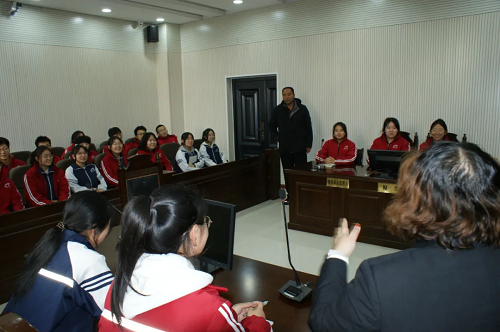 在干警的指導(dǎo)下,同學(xué)們模擬庭審現(xiàn)場,從審判長、審判員到公訴人、辯護(hù)人、被告人等,大家紛紛扮演起了不同的角色。