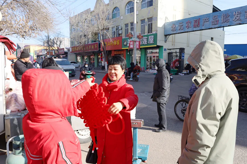 正在購置年貨的河曲法院調(diào)解員王永梅在回家路上,正好碰到帶著一家老小置辦年貨的大明。大明女兒毛毛一眼認出了王永梅。