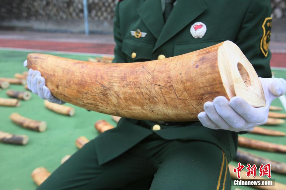 此時,嫌疑快艇非但不配合,反而加速逃逸。經(jīng)過一路的追擊,嫌疑快艇最終在淇澳島大澳灣沖灘,緊隨其后的執(zhí)勤官兵快速對現(xiàn)場進(jìn)行了封鎖勘查。經(jīng)查,在嫌疑快艇的船艙及附近岸邊散落有用蛇皮袋和膠紙緊裹的紙箱,經(jīng)清點,在紙箱內(nèi)發(fā)現(xiàn)夾藏的象牙共計221塊,總重約450千克。圖片來源:視覺中國