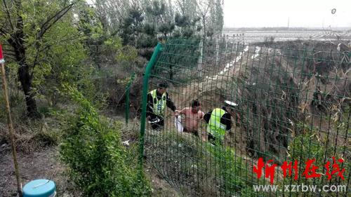執(zhí)勤民警提高了警惕,立即跑過去準(zhǔn)備查驗該駕駛員的證件。但就在民警快跑到違停車輛跟前時,銀灰色奇瑞轎車司機(jī)突然打開車門,向護(hù)欄外加速逃跑??吹教痈Z的司機(jī),就近的民警不由分說,立即追了上去。逃竄的司機(jī)翻過護(hù)欄,又翻過護(hù)網(wǎng)向農(nóng)田竄去。民警們緊追不舍,并且大喊:“別跑,……別跑”!終于在附近的農(nóng)田邊上將其摁到在地。確認(rèn)駕駛員胡某身上沒有危險品后,兩位民警將其控制并帶回隊里。