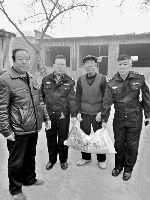 近年來,大隊(duì)把扶貧工作當(dāng)作一項(xiàng)政治任務(wù)抓在手上,為了更好地精準(zhǔn)扶貧,按計(jì)劃力爭(zhēng)提前完成扶貧攻堅(jiān)任務(wù)。2015年,李晉生擔(dān)任了原平市南白鄉(xiāng)尚義村的第一書記,負(fù)責(zé)該村的幫扶工作。南白鄉(xiāng)尚義村是原平市的重點(diǎn)貧困村,也是交警大隊(duì)幫扶村,全村204人,貧困人口占80%。當(dāng)年12月17日,他自籌2000多元,購(gòu)買了米、面、糧、油,與大隊(duì)的4位民警來到了南白鄉(xiāng)尚義村走訪慰問特困家庭。在全市開展精準(zhǔn)扶貧的攻堅(jiān)階段,為了讓特困家庭度過溫暖的冬季,交警大隊(duì)民警進(jìn)村入戶共慰問五保戶、特困戶8戶,為他們送去了面粉、大米和食用油。同時(shí),大隊(duì)長(zhǎng)還看望了90歲高齡的抗戰(zhàn)老兵趙書良,1925年出生的趙書良老人,17歲時(shí)就參軍,在抗日戰(zhàn)爭(zhēng)中多次立功授獎(jiǎng)。當(dāng)老人雙手接過慰問金后,激動(dòng)地說:“還是共產(chǎn)黨好,人民警察和人民真是心連心?。 ?