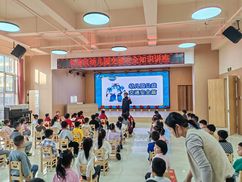 活動(dòng)中,交警向園內(nèi)幼兒及教職工播放了幼兒交通安全宣傳視頻,通過(guò)對(duì)視頻內(nèi)容的講解,引導(dǎo)孩子們進(jìn)一步理解交通安全法規(guī)與出行安全。