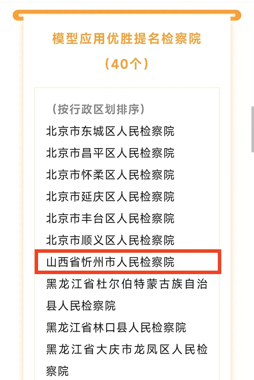 1月8日,最高檢組織的2024年全國檢察機(jī)關(guān)大數(shù)據(jù)法律監(jiān)督模型推廣活動評選結(jié)果出爐:忻州市人民檢察院在模型應(yīng)用活動中進(jìn)入全國前50名,獲評全國“模型應(yīng)用優(yōu)勝提名檢察院”。