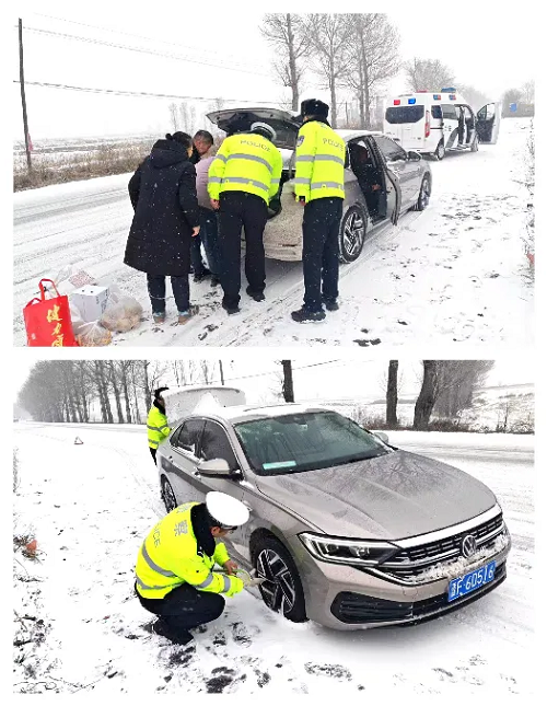寒風凜冽,大雪紛飛,你們卻起早貪黑,從未有過絲毫懈怠。每一個清晨,當人們還在溫暖的被窩中時,你們已奔赴道路,指揮交通;每一個深夜,在萬家燈火映照下,你們的身影仍在街頭佇立。為了讓返鄉(xiāng)出行的人們安全回家過年,你們全力為車輛保駕護航。遇到受困的車輛與人員,你們毫不猶豫地伸出援手,推車、除雪、提供應急物資,用真誠與過硬作風,書寫著警民和諧的動人篇章。