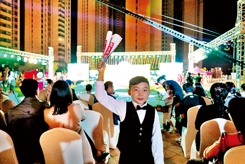 月光皎潔,清輝遍灑,這夜雖是農(nóng)歷八月十三,月亮卻已迫不及待地圓了起來?;ê迷聢A、春花秋月、花前月下……月宮是神話中的仙境,而此時(shí)泛華酒店的后花園里也如仙境一般,琴、詩、書法共同演繹《春江花月夜》,讓現(xiàn)場的500余名觀眾如癡如醉。面容清秀、刺繡大紅旗袍在身的琴師端坐在舞臺(tái)的左側(cè),雙手拂動(dòng),琴聲綿綿,舒心悅耳;鋪紙、執(zhí)筆、蘸墨、揮毫,舞臺(tái)中央的呂峰仿佛置身自家書房之中,墨香中三幅書法作品轉(zhuǎn)瞬完成;“醉眼看世界,朦朧看人生……李白醉了,醉了!”舞臺(tái)右側(cè)的朗誦者孫美琴將李白的一生揉碎在他的詩中,就著朦朧的月色,用獨(dú)特的聲線摻在她的情感中,沉醉了自己,也迷醉了觀眾。