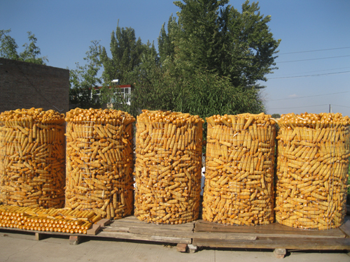 圖為南元村一戶農民晾曬的玉米。(賈金理 攝)