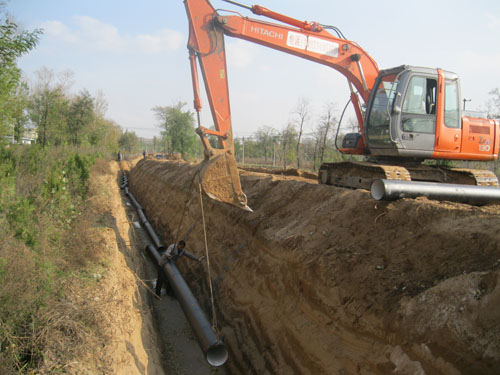 10月30日,河曲縣新建縣城供水工程工地上,挖掘機(jī)正在吊放水管。隨著氣溫下降,施工單位排好工期,緊鑼密鼓作業(yè),確保上凍前完成水管接合和掩埋任務(wù)。整體工程完工后,可保障7萬人在用水高峰期能夠正常用水。(賈金理 攝)