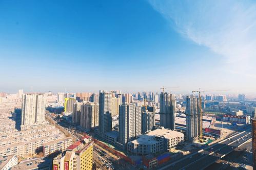 1月9日,太原市空氣AQI指數(shù)81,市民迎來了一個干凈透亮的二級天。圖為蔚藍(lán)天空下省城南內(nèi)環(huán)西街附近景色。