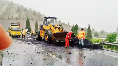 7月6日凌晨3點(diǎn),忻州高速公路養(yǎng)護(hù)工區(qū)接到忻州高速公路管理處電話通知:K654路段通往三家村收費(fèi)站互通匝道入口處,有一車輛側(cè)翻橫于路中拋撒煤面,影響了公路正常通行,需及時(shí)處置。養(yǎng)護(hù)工區(qū)接到通知后立即啟動(dòng)應(yīng)急預(yù)案,出動(dòng)搶險(xiǎn)人員9名、工具車一輛、皮卡車一輛、鏟車一臺(tái)、自卸汽車一臺(tái)火速趕往現(xiàn)場。搶險(xiǎn)人員冒著風(fēng)雨,按照標(biāo)準(zhǔn)設(shè)置了警示標(biāo)志,經(jīng)過三個(gè)多小時(shí)的緊張工作,清掃工作全部完成,路面恢復(fù)整潔暢通,保障了高速公路的安全通行。(任淑萍 攝)