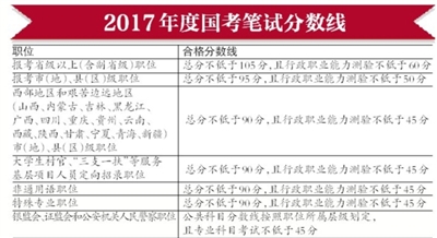 今年的分?jǐn)?shù)線與往年基本保持持平,報(bào)考省級以上(含副省級)職位的合格分?jǐn)?shù)線為:總分不低于105分,且行政職業(yè)能力測驗(yàn)不低于60分;報(bào)考市(地)、縣(區(qū))級職位的合格分?jǐn)?shù)線為:總分不低于95分,且行政職業(yè)能力測驗(yàn)不低于50分。