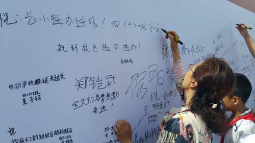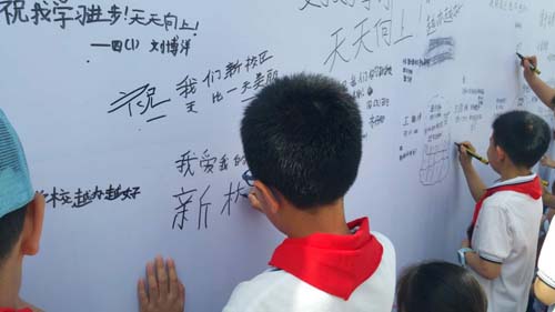 長(zhǎng)征路小學(xué)黨支部書(shū)記湯永斌告訴記者:“組織學(xué)生、家長(zhǎng)參觀新校區(qū),我們不僅是展示新校區(qū)優(yōu)美的環(huán)境,先進(jìn)的教學(xué)設(shè)施設(shè)備,培養(yǎng)師生熱愛(ài)新校區(qū),愛(ài)護(hù)新校區(qū)的情感, 更重要的是我們把綜合實(shí)踐課的課堂開(kāi)到了新校區(qū),利用孩子們眼中所看到的新校區(qū),來(lái)激發(fā)學(xué)生的創(chuàng)作靈感,拓展他們的想象力,從而提高學(xué)生繪畫(huà)、書(shū)法、攝影、寫(xiě)作的能力和水平。并表示:“長(zhǎng)征路小學(xué)將以此次搬遷為契機(jī),繼續(xù)秉承學(xué)校優(yōu)良辦學(xué)傳統(tǒng),努力建設(shè)具有“一流硬件設(shè)施,一流師資隊(duì)伍,一流教育管理,一流辦學(xué)特色,一流教學(xué)質(zhì)量”的“五個(gè)一流”學(xué)校。把新長(zhǎng)小創(chuàng)辦成一所學(xué)生樂(lè)學(xué)、教師幸福、家長(zhǎng)滿意的學(xué)校,讓這塊全市小學(xué)教育的金字招牌熠熠生輝,為忻州優(yōu)質(zhì)、均衡教育發(fā)展作出重大的貢獻(xiàn)?!保ê路郑?/p>