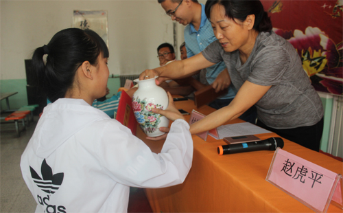 北義井鄉(xiāng)政府付俊敏鄉(xiāng)長(zhǎng)在頒獎(jiǎng)儀式上講話中勉勵(lì)學(xué)生們要學(xué)好文化課,寫好中國(guó)字,做好中國(guó)人。希望在今后的校園生活中,書(shū)法繪畫(huà)將成為每個(gè)學(xué)生的必修課,成為一生興趣和愛(ài)好,成為師生共同努力的目標(biāo)。(馬卓寧)