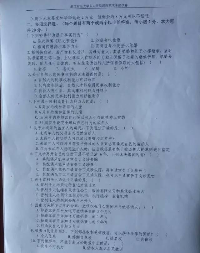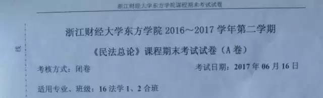 昨天,浙江財(cái)經(jīng)大學(xué)東方學(xué)院法學(xué)專業(yè)的學(xué)生就碰上了“萬一”——《民法總論》的期末考試試卷,竟通篇引用《人民的名義》?。?!
