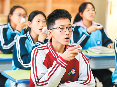昆都侖區(qū)一所中學(xué)的學(xué)生使用英語(yǔ)聽(tīng)說(shuō)學(xué)習(xí)平臺(tái)進(jìn)行練習(xí)。昆都侖區(qū)教育局供圖