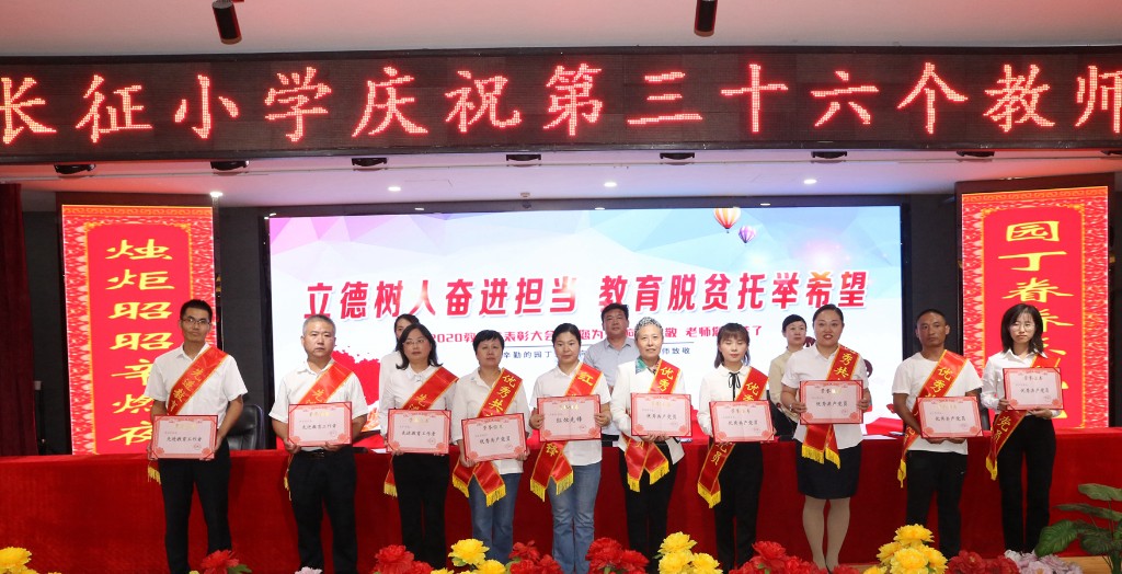 支部書記常文華主持大會并宣讀了長征小學模范教師名單,副校長周玉靜宣讀了長征小學優(yōu)秀班主任名單,副校長劉秀峰宣讀了長征小學先進教育工作者名單和優(yōu)秀共產(chǎn)黨員名單,同時舉行了隆重的頒獎儀式。