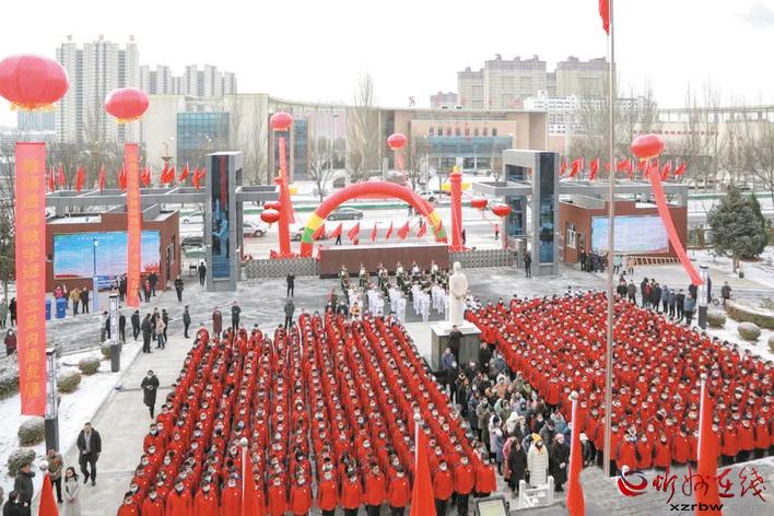 本報(bào)訊 近日,雪后的范亭中學(xué)彩門高懸,紅旗飄揚(yáng),軍樂高奏,鑼鼓喧天,校園提質(zhì)改造一期工程竣工典禮儀式在學(xué)校將軍廣場隆重舉行。