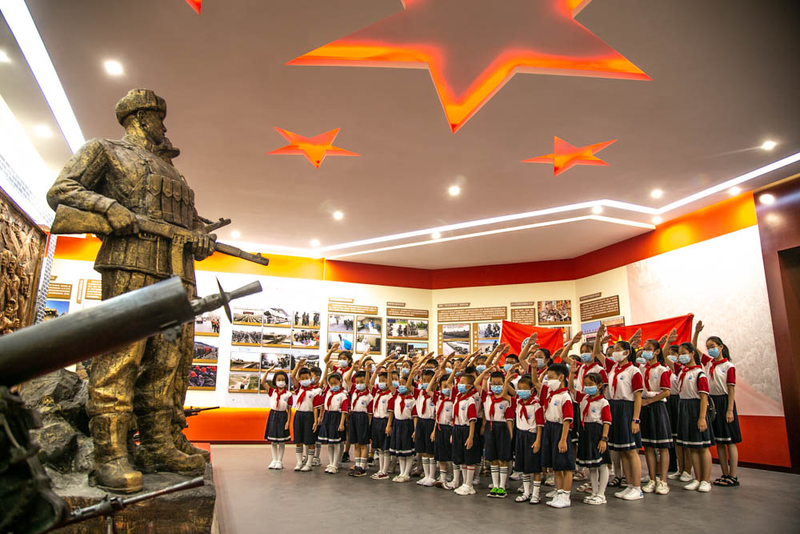 7月24日上午,懷著無比激動和崇敬的心情,學(xué)生們有序進入部隊旅史紀念館。
