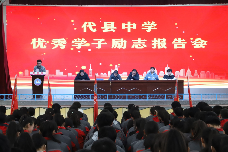 為激發(fā)學(xué)生的學(xué)習(xí)熱情,掌握科學(xué)、合理的學(xué)習(xí)方法,發(fā)揮優(yōu)秀學(xué)生榜樣的引領(lǐng)作用,2月13日下午,代縣中學(xué)高中部邀請本校優(yōu)秀畢業(yè)生回母校作了一次精彩的勵(lì)志報(bào)告會(huì),會(huì)議由高三年級主任田愛國主持,學(xué)校黨支部書記裴玉順、政教處主任王貴恩、高考班班主任及500余名學(xué)生人聆聽了報(bào)告。