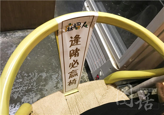 店內(nèi)寫有“逢賭必贏”的椅子。