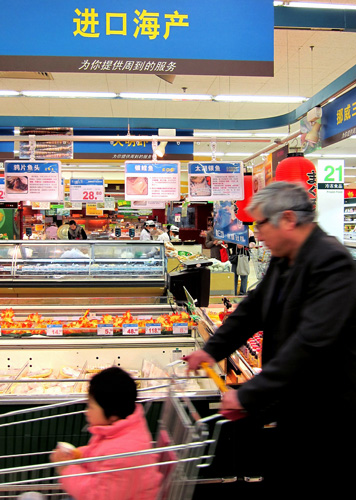 資料圖:消費(fèi)者在一家大型超市選購進(jìn)口食品。新華社記者 陳飛 攝