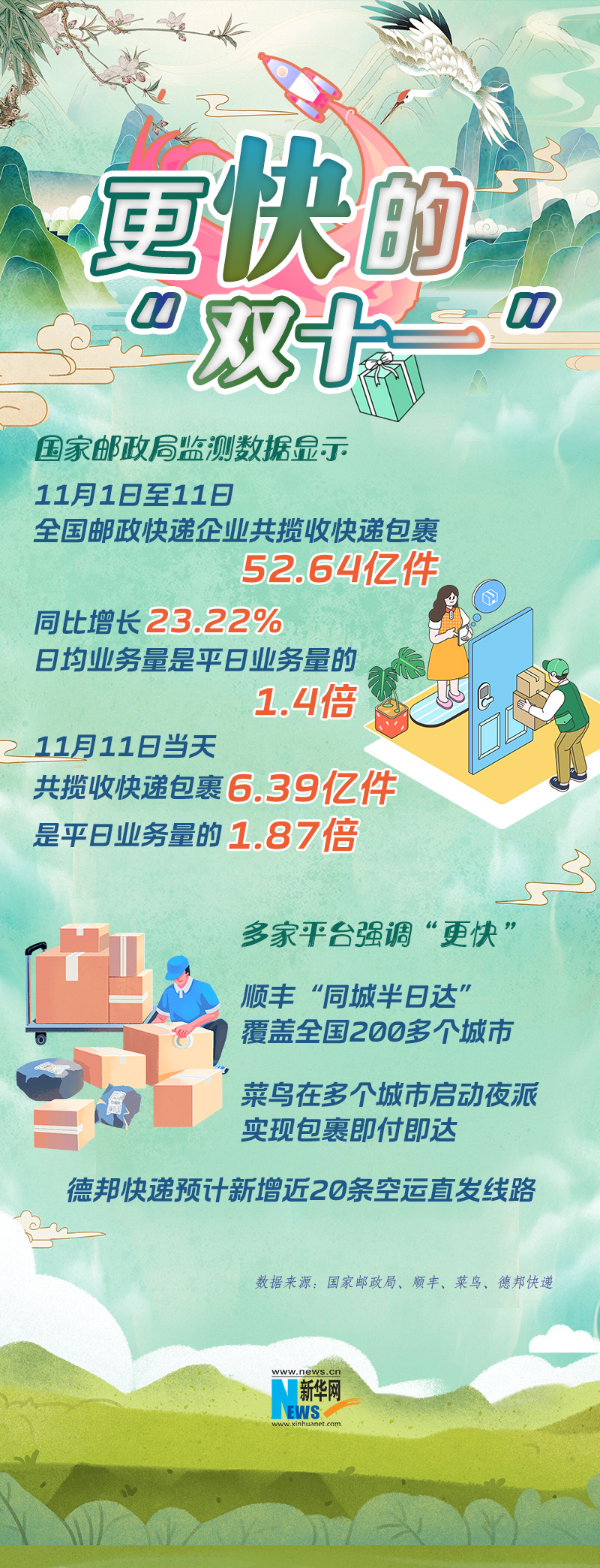 快遞量級展現(xiàn)向好趨勢。國家郵政局11月12日發(fā)布數(shù)據(jù),2023年11月1日至11日,全國郵政快遞企業(yè)共攬收快遞包裹52.64億件,同比增長23.22%,日均業(yè)務(wù)量是平日業(yè)務(wù)量的1.4倍。11月11日當天,共攬收快遞包裹6.39億件,是平日業(yè)務(wù)量的1.87倍,同比增長15.76%。