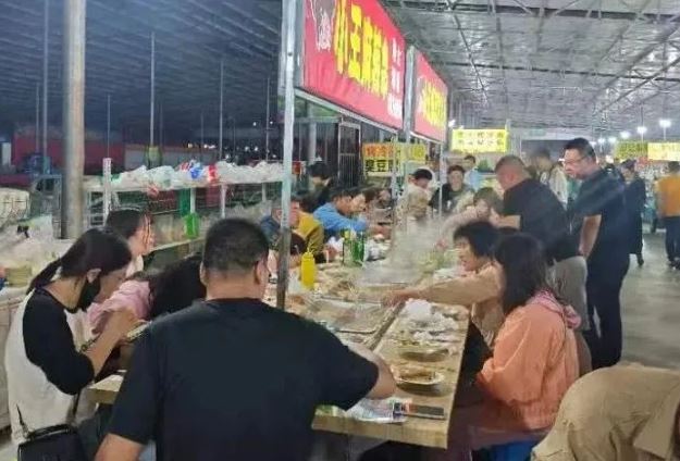 下午6時(shí),公園東街便民市場(chǎng)結(jié)束短暫的“休眠”被準(zhǔn)時(shí)喚醒,迎來(lái)一波“夜市大軍”,鐵板魷魚(yú)、東北燒烤、煎餅果子、臭豆腐、麻辣燙……來(lái)自四面八方的小吃商販魚(yú)貫而入。停車、支桌、擺凳、備料、開(kāi)火,緊接著煙火升騰、人聲鼎沸。至此,這個(gè)平日里只在早上為附近居民提供生活便利的菜市場(chǎng)完成了身份切換,開(kāi)啟夜市模式。