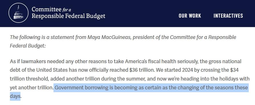 聯(lián)邦預(yù)算問責(zé)委員會主席馬婭·麥吉尼亞斯在發(fā)言稿中直言:“如今,美國政府借款正變得像季節(jié)的變化一樣規(guī)律而確定?!?/p>